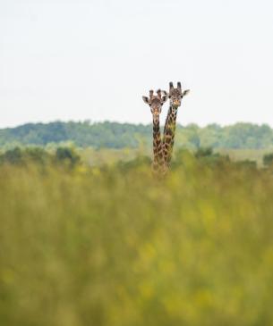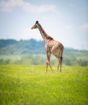 The Wilds is home to two of these subspecies: Reticulated and Masai. Reticulated giraffe have polygonal shaped spots with a white background. Masai giraffe have dark leaf-like spots on a yellowish background. The giraffe spot pattern allows them to blend in with trees.