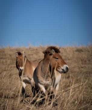 The Wilds has a strong breeding program for Przewalski's wild horses, and we also have the ability to manage a herd of males completely separate from the breeding herd. The herd is also involved in studies regarding the impact of stress on reproduction and artificial insemination (AI) in collaboration with the Smithsonian Conservation Biology Institute.